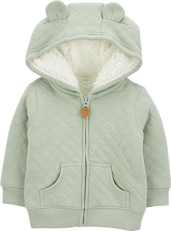 Baby Hooded Sweater Jacket with Sherpa Lining, Green
