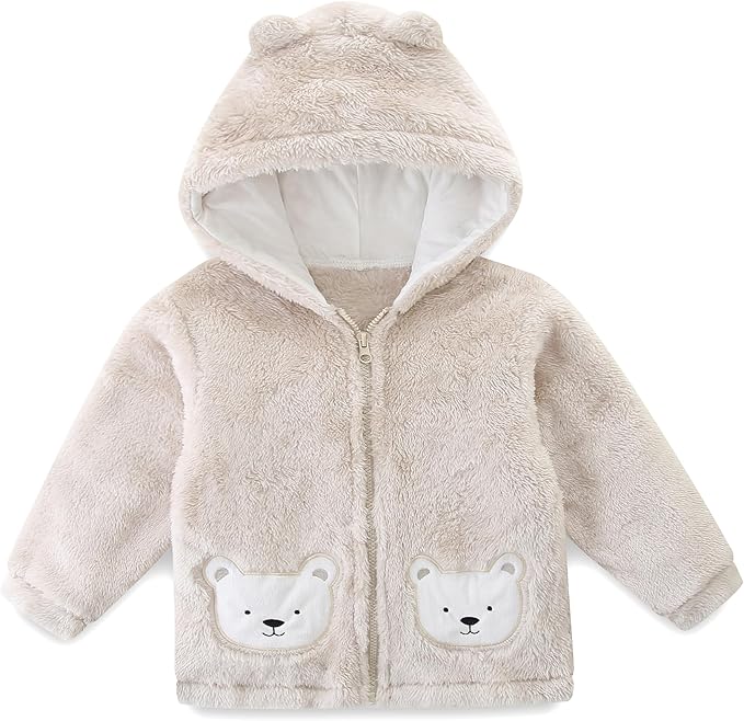 Baby Hoodie Sherpa Lined Zip up Light Fleece Jacket Solid Bear Coat Fall Winter 3-24 M