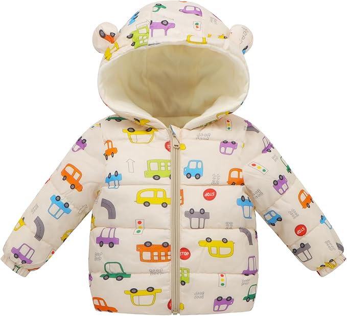 Baby's Puffer Jacket with Hood Cute Cartoon Cotton Coats Winter Warm Outerwear