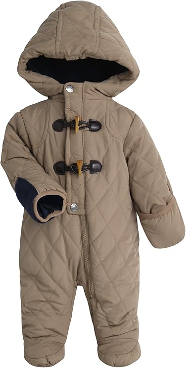 Baby Boys' Pram Jumpsuit - Sueded Microfiber, Memory Quilted Snowsuit - Newborn Infant Outerwear Coveralls (0-9M)
