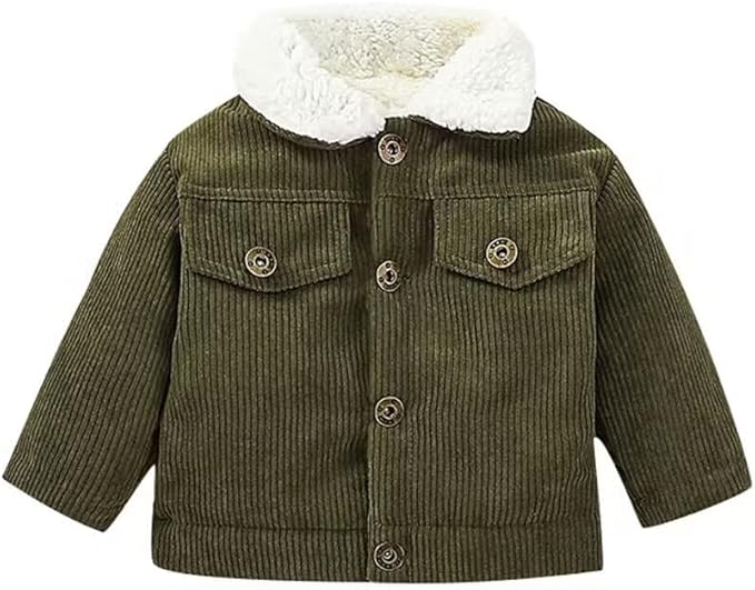Baby Boys Girls Corduroy Jacket Kids Toddler Sherpa Lined Top Lapel Button Down Thicked Warm Coat Winter Outerwear