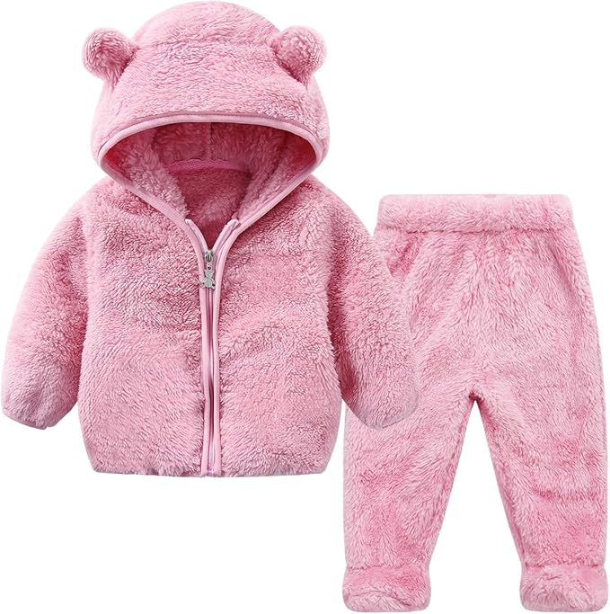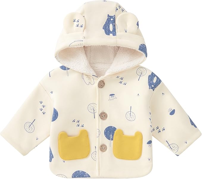 Baby Hoodie Sherpa Lined Zip up Light Fleece Jacket Solid Bear Coat Fall Winter 3-24 M