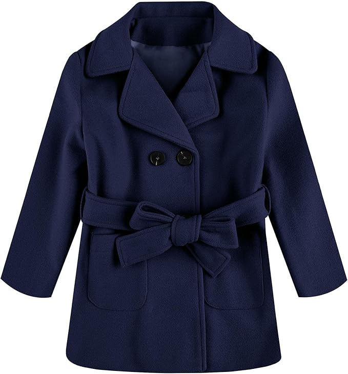 Baby Kids Boys Girls Classic Wool Blend Coat Winter Double Breasted Trench Coat Outwear Pea Coat Jacket with Belt