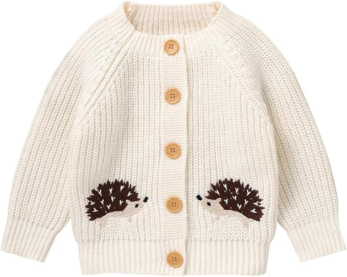 Baby Boy Girl Knit Cardigan Sweater Soft Warm Crochet Round Neck Long Sleeve Coat Toddler Outwear Fall Winter Clothes
