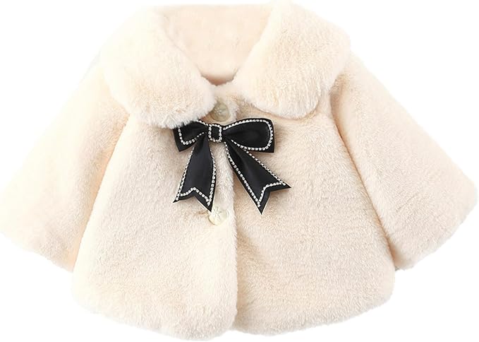 Baby Girls Faux Fur Warm Cloak Coat Cute Winter Furry Cape Jacket Fluffy Plush Fleece Outwear with Bowknot