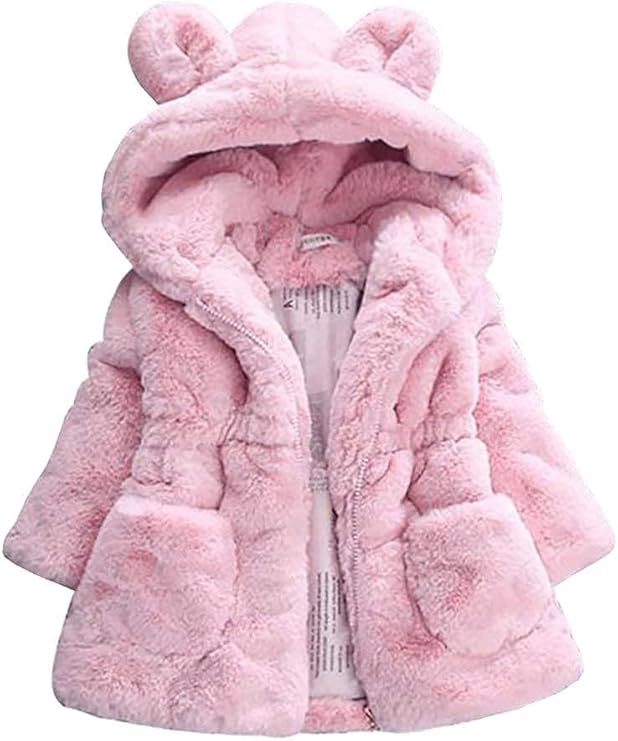 Toddler Girls Winter Fleece Coat Kids Hooded Faux Fur Jacket Baby Warm Outwear